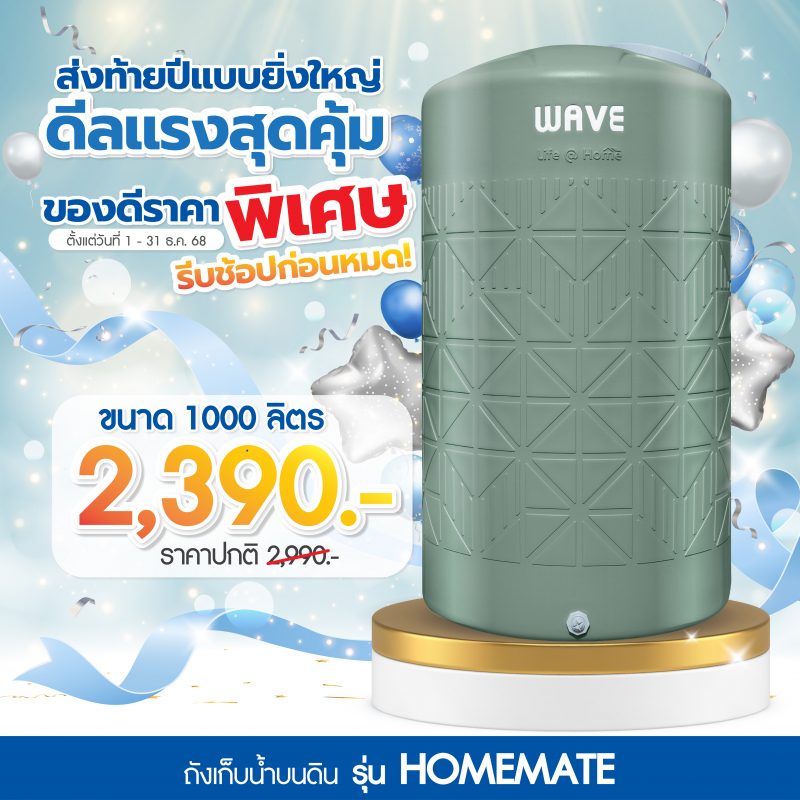 WAVE ผลิตและจำหน่ายถังเก็บน้ำบนดิน ราคาถังน้ำคุณภาพ แท้งค์น้ำ ถังบําบัดน้ำเสีย ถังดักไขมัน ถังแซท ถังไฟเบอร์กลาส ปั๊มน้ำ เครื่องกรองน้ำ มาตรฐานสากล ปลอดภัย ดีไซน์สวยตอบโจทย์ทุกไลฟ์สไตล์อย่างลงตัว