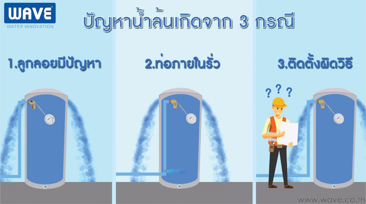 ก่อนอื่นหากเกิดปัญหาน้ำล้นถังเก็บน้ำ แท้งค์น้ำ หรือถังพักน้ำ ไม่ต้องตกใจไปนะคะ อย่าเพิ่งโทษสินค้า อย่าเพิ่งโทษคนติดตั้งถังเก็บน้ำ แท้งค์น้ำ หรือถังพักน้ำ และอย่าเพิ่งโทษตัวเองไปค่ะ มาดูกันค่ะว่าปัญหาเหล่านี้เกิดจากสาเหตุอะไร เมื่อรู้แล้ว แก้ไม่ยากแน่นอนค่ะ