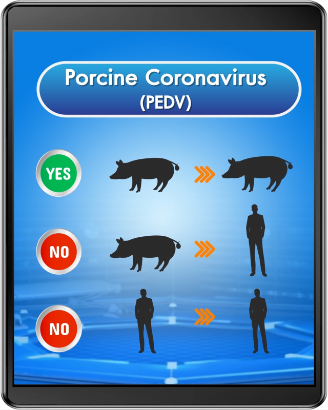 ยกตัวอย่าง Porcine coronavirus (PEDV) คือ สถานการณ์โรคท้องร่วงติดต่อในหมู เกิดจากเชื้อไวรัสกลุ่ม Coronavirus (Porcine Epidemic Diarrhea virus, PEDV) ซึ่งเป็นโรคที่เกิดจากการติดต่อจากสัตว์สู่สัตว์ เป็นโรคที่ทำให้หมูเกิดอาการป่วย ไม่ลุกกินอาหารและน้ำ มีอาการท้องเสียรุนแรง