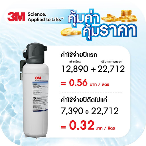 ยกตัวอย่าง 3Mเครื่องกรองน้ำ มีความสามารถในการกรองและได้ปริมาณน้ำสูงตกลิตรละแค่ 0.56 บาท และปีถัดไปแค่ 0.32 บาท เท่านั้น โดยเราสามารถนำ (ราคาเครื่องและไส้กรอง หาร ความสามารถในการกรองของเครื่องกรองน้ำแต่ละรุ่น(ลิตร) แค่นี้เราก็จะได้ค่ากรองของน้ำต่อลิตรเพื่อคำนวณว่าเครื่องน้ำแบรนด์ไหนให้ทั้งความปลอดภัยและให้ความคุ้มค่ากับเราบ้าง