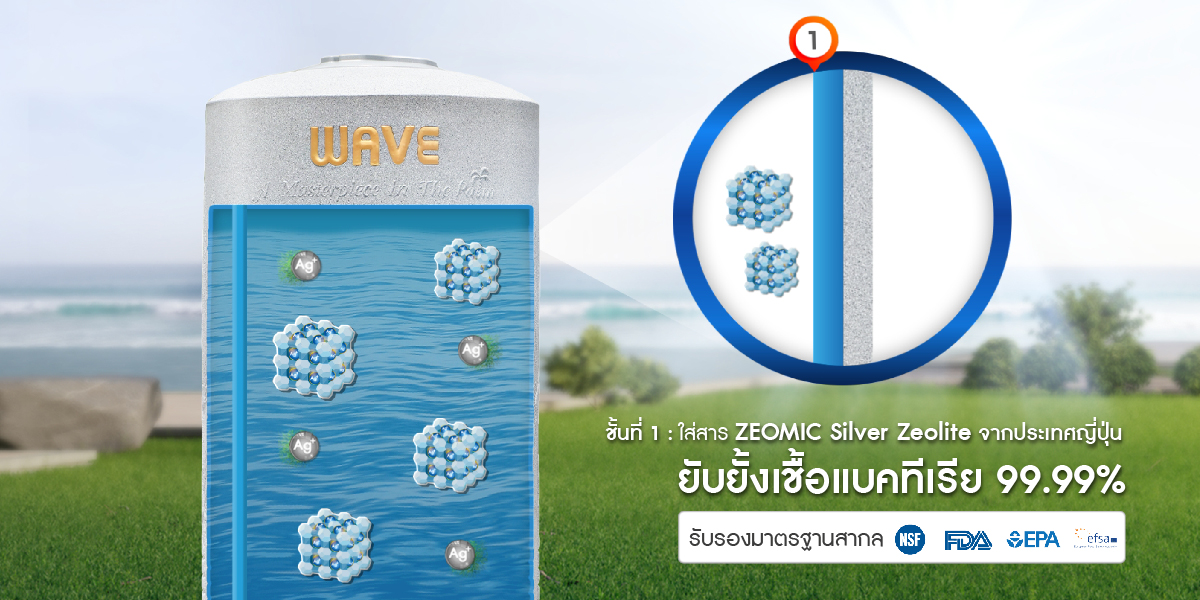 ชั้นที่ 1 เป็นถังชั้นด้านใน ที่ใส่สาร ZEOMIC Silver Zeolite จากประเทศญี่ปุ่น รับรองมาตรฐานสากล FDA NSF EPA EFSA ผลการทดลองพิสูจน์ได้ว่า สามารถยับยั้งเชื้อแบคทีเรียได้ถึง 99.99% ซึ่งเป็นนวัตกรรมที่ใช้ในกลุ่มเดียวกับเวชสำอางค์และเครื่องมือแพทย์ ทำให้คุณสบายใจได้ในความสะอาดของน้ำที่จะใช้ภายในบ้านหรือครัวเรือนได้แน่นอน