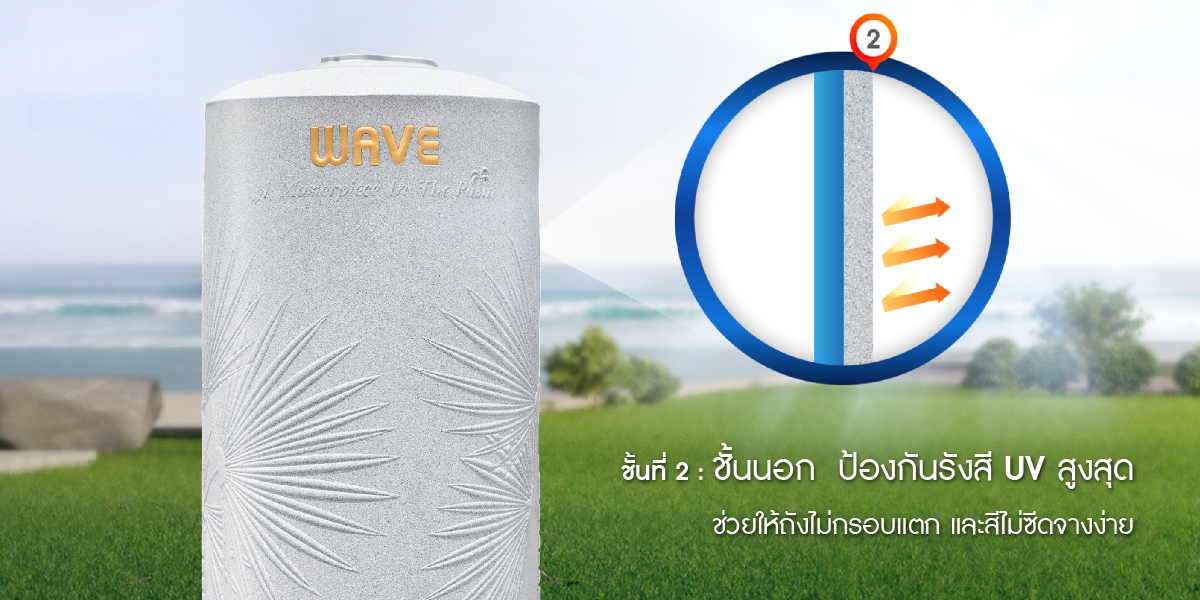เห็นไหมครับว่าถังเก็บน้ำเวฟ ไม่ได้มีดีแค่หนาอย่างเดียว แต่ยังแฝงประโยชน์ไว้อีกเพื่อให้คุณได้ใช้น้ำที่สะอาดไปอีกยาวนาน… แต่เราอยากเสริมข้อมูลบางอย่างให้สำหรับบางคนที่ยังเข้าใจผิดว่า UV จะช่วยป้องกันไม่ให้แสงทะลุเข้าถัง ซึ่งสามารถดูข้อมูลเพิ่มได้ที่ ? คลิก ?