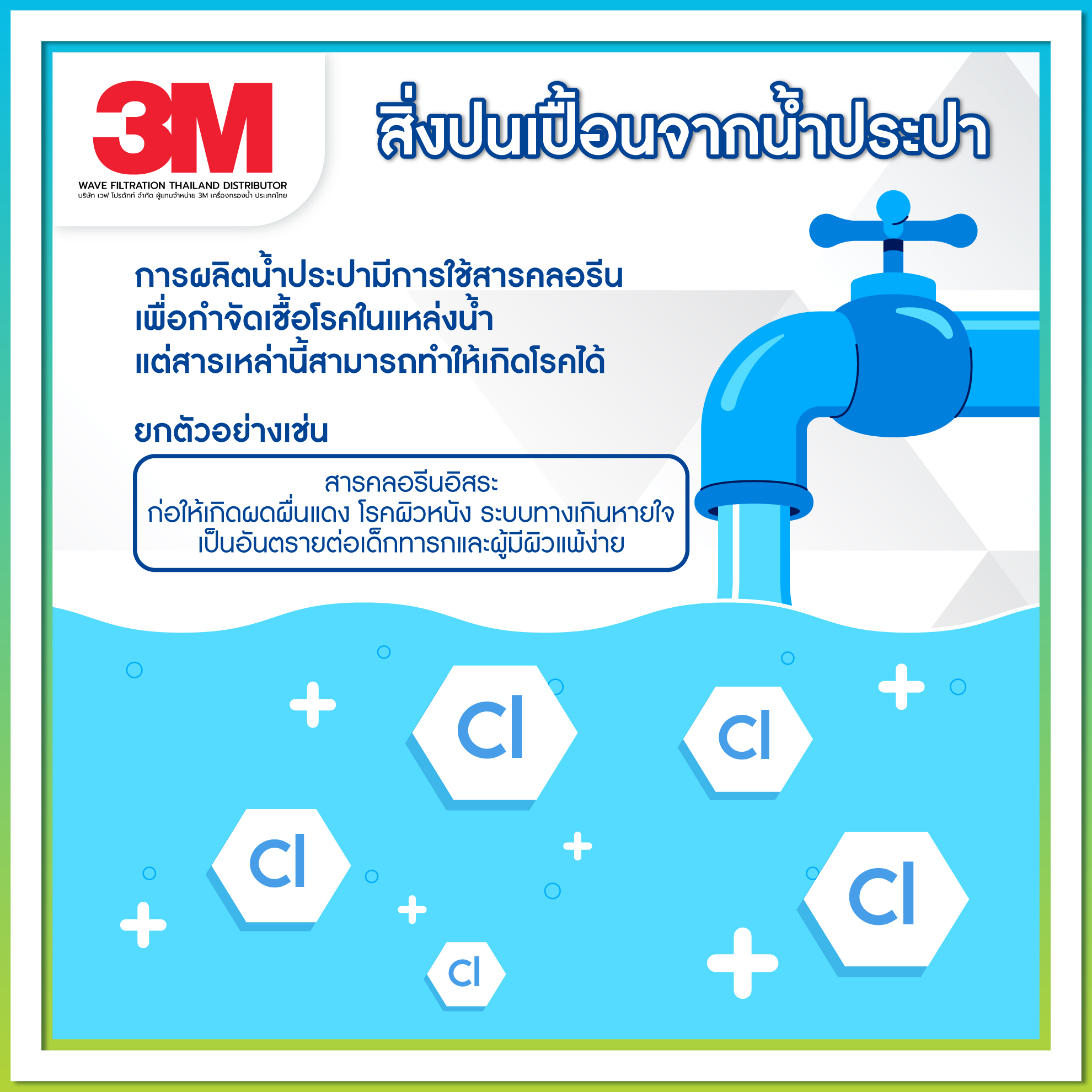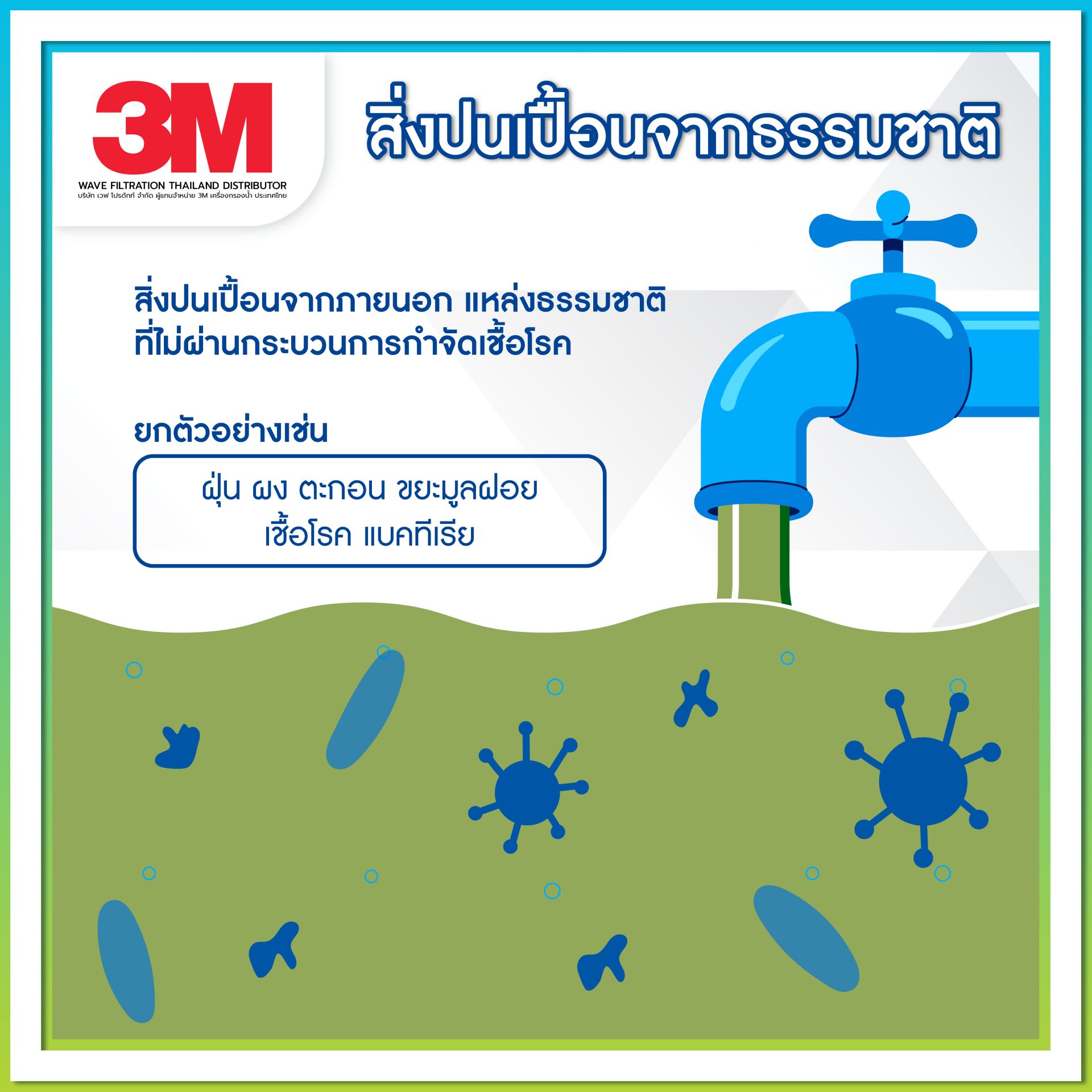 น้ำประปาที่เราใช้กันนั้น จากแหล่งน้ำ สู่กระบวนการผลิตน้ำประปา และส่งมายังครัวเรือน สามารถเกิดสิ่งปนเปื้อนระหว่างทางได้ แต่ 3M เครื่องกรองน้ำสามารถทำให้คุณใช้น้ำที่สะอาด ปลอดภัย และมั่นใจได้ เพราะเราได้รับการรับรองจากมาตรฐานสากลว่าสามารถกรองสารปนเปื้อนเหล่านี้ได้ ทั้งเชื้อโรค ฝุ่น ตะกอน สารแขวนลอย ตะกั่ว สารคลอรีน และยังมีการใช้เทคโนโลยีการกรองแบบ IMPACT ที่ออกแบบมาเพื่อลดแบคทีเรียได้ถึง 0.2 ไมครอน ดังนั้นแบคทีเรียหรืออนุภาคที่มีขนาดมากกว่า 0.2 ไมครอนไม่สามารถผ่านเข้ามาได้ถึง 99.99% คุณจะได้รับน้ำดื่มที่มีคุณภาพยอดเยี่ยมกว่าแบรนด์อื่นในไทย