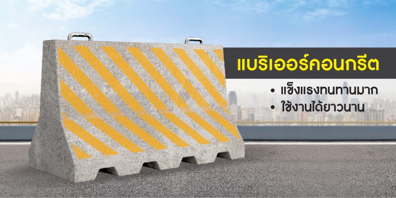 ด้วยวัสดุที่เป็นคอนกรีตจึงทำให้ตัวแบริเออร์มีความแข็งแรงทนทานมาก แต่จะไม่มีความยืดหยุ่นจึงทำให้เมื่อเกิดเหตุรถชน รถก็จะไม่เสียหลักไปทางอื่นแต่…ตัวรถก็จะเกิดความเสียหายมากพอสมควร เหมาะกับการใช้งานในระยะยาวในพื้นที่นั้นๆ เพราะทำด้วยคอนกรีตจึงทำให้มีน้ำหนักมาก การขนย้ายบ่อยๆอาจมีค่าใช้จ่ายค่อนข้างสูง