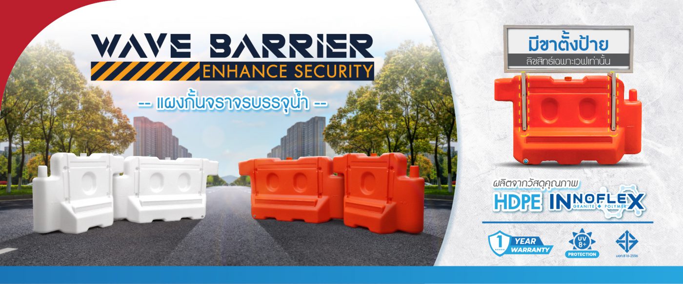 หากคุณกำลังมองหาแผงกันถนน หรือ แบริเออร์ (Barrier) ที่มีคุณภาพ เราขอแนะนำสินค้าใหม่ “WAVE Barrier แผงกั้นจราจรบรรจุน้ำ” เวฟแบริเออร์นั้นเป็นแบบพลาสติกชนิดพิเศษ โดยผลติจากวัสดุคุณภาพ HDPE INNOFLEX ทำให้ตัวแบริเออร์มีความแข็งแรง เหนียว ไม่แตกง่าย ใช้งานได้อย่างยาวนานแน่นอน นอกจากความทนทานแล้ว ในส่วนของความสะดวกสบายก็ดีไม่แพ้กัน เพราะสามารถขนย้ายได้ง่าย เพียงแค่ถ่ายน้ำออกเท่านั้น ก็โยกย้ายได้เลย สะดวกสบายกว่าที่เคยมีมา