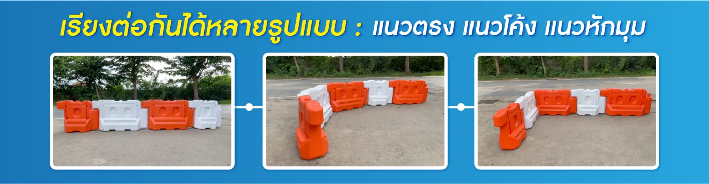 Wave Barrier มาพร้อมตัวยึดล็อคขนาดใหญ่และลึก ทำให้เชื่อมต่อกันได้อย่าง แน่นหนา ไม่มีหลุด สามารถใช้ได้หลายรูปแบบ…ไม่วางจะวางต่อกันเป็นแนวยาว หรือจะเป็นทางโค้ง แม้แต่แบบหักมุมก็สามารถทำได้ เมื่อวางเสร็จก็เติมน้ำในปริมาณที่เหมาะสม เพียงแค่นี้ก็พร้อมใช้งานแล้ว นอกจากนี้ยังป้องกันแสง UV8+ ทนทานทุกสภาพอากาศ เสริมความมั่นใจด้วย มาตรฐานอุตสาหกรรม (มอก.) รับประกัน 1 ปี *พิเศษสุด กับร่องแบริเออร์ที่ถูกออกแบบมาเพื่อใส่ป้าย หรือติดไฟแจ้งเตือน ลิขสิทธิ์เฉพาะเวฟ เท่านั้น!