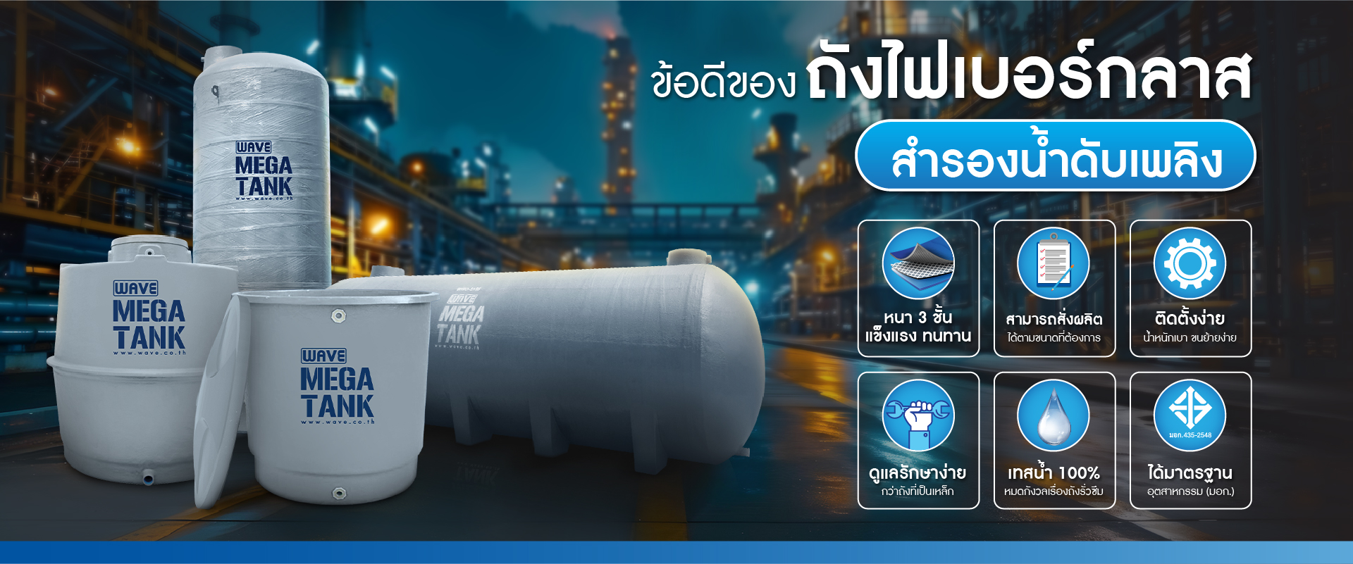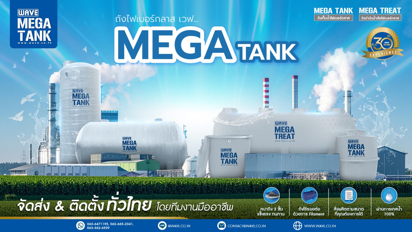 ดูรายละเอียดเพิ่มเติมเกี่ยวกับถังไฟเบอร์กลาส WAVE MEGA TANK ได้ที่ WAVE Official Website