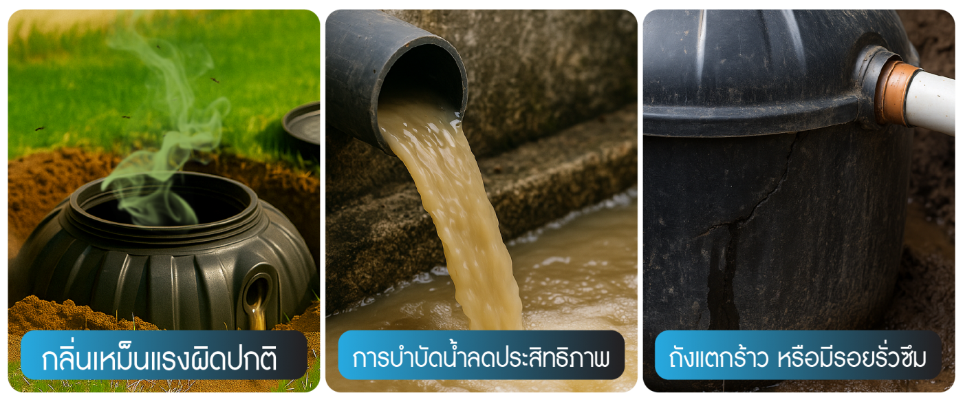 1. กลิ่นเหม็นแรงผิดปกติจากบริเวณถังบำบัด