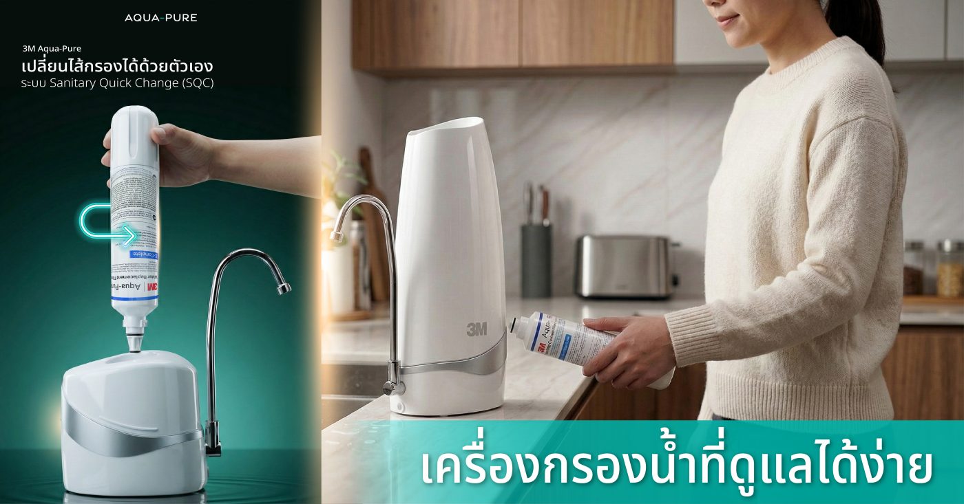 A: เครื่องกรองน้ำบางรุ่นออกแบบให้ผู้ใช้งานสามารถเปลี่ยนไส้กรองน้ำเองได้ เช่น ระบบ Sanitary Quick Change (SQC) ซึ่งเป็นเทคโนโลยีที่พบในเครื่องกรองน้ำของ 3M ทำให้สามารถเปลี่ยนไส้กรองน้ำได้ง่าย สะอาด และไม่ต้องเรียกช่างเข้ามาในบ้าน อีกทั้งยังเป็น ระบบปิด (Sanitary Design) ที่ช่วยป้องกันการสัมผัสกับไส้กรองน้ำโดยตรง ลดโอกาสการปนเปื้อนระหว่างการเปลี่ยนไส้กรองน้ำได้อย่างมีประสิทธิภาพ