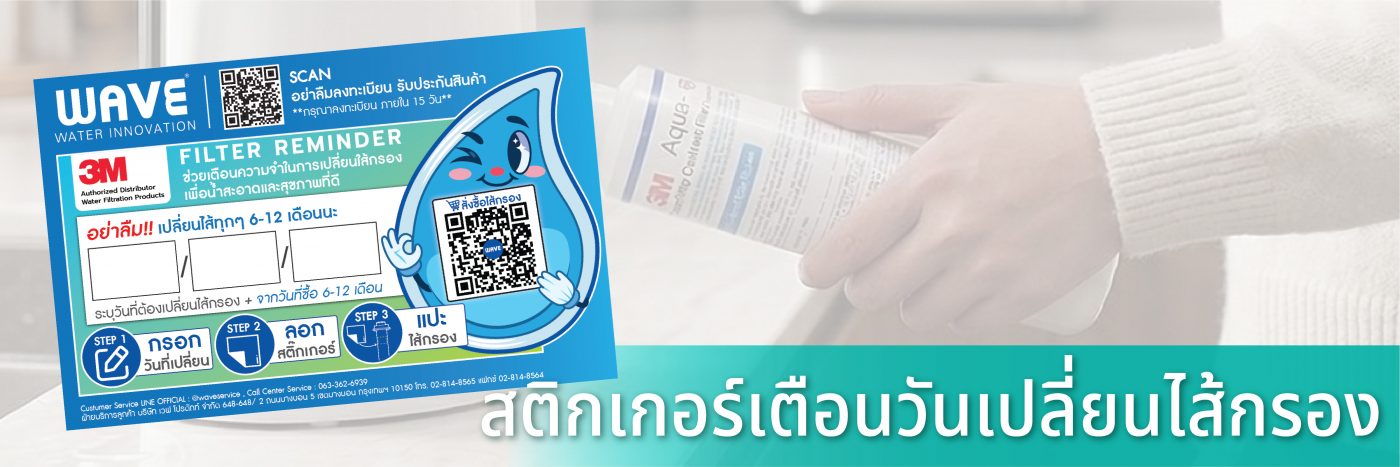 นอกจากนี้ยังมี สติกเกอร์ระบุวันที่เปลี่ยนไส้กรองน้ำ เพื่อช่วยเตือนให้ผู้ใช้งานไม่ลืมรอบการเปลี่ยน
