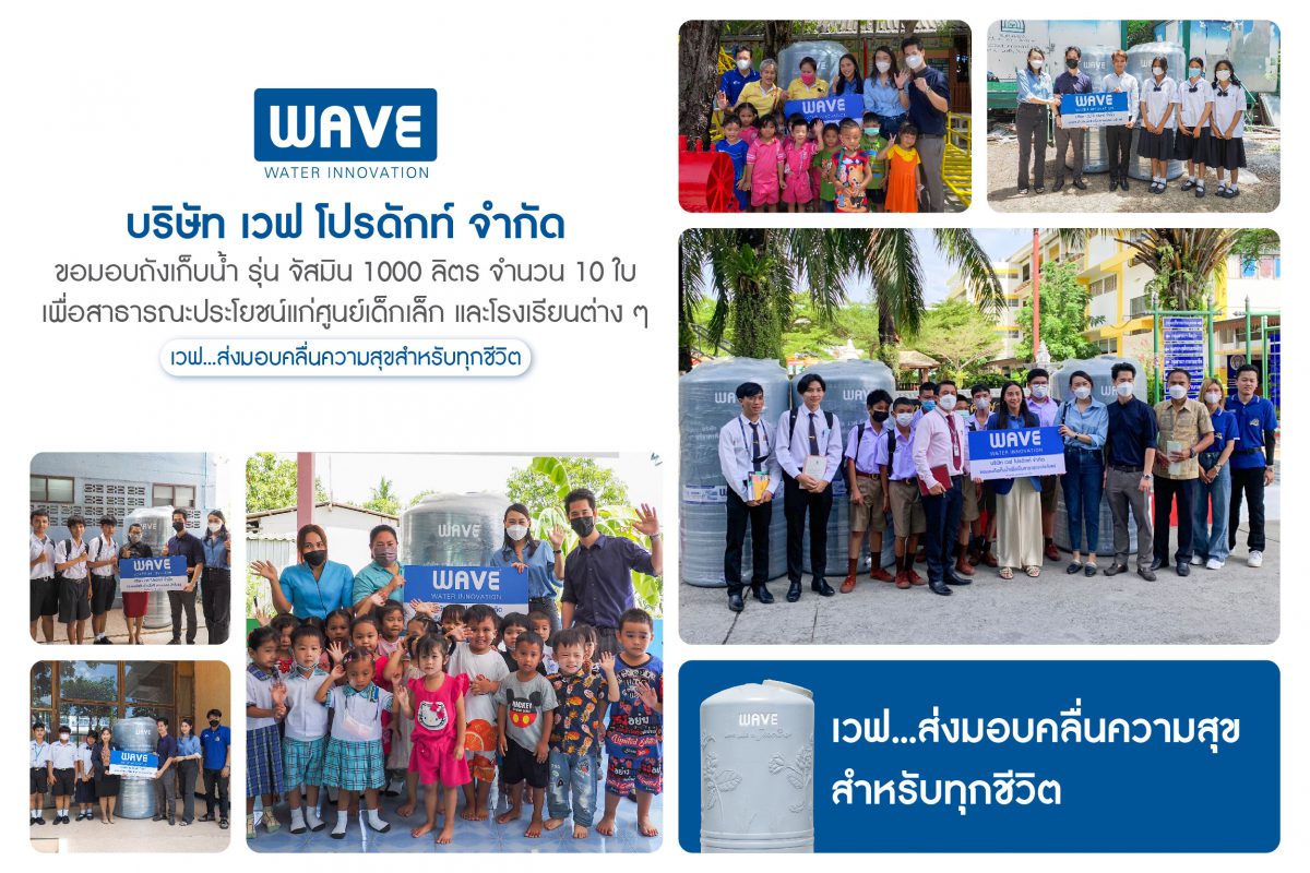 เพราะเวฟให้ความสำคัญเรื่องความสะอาดปลอดภัยในทุกการใช้น้ำ อีกทั้งต้องการยกระดับคุณภาพน้ำให้กับศูนย์พัฒนาเด็กเล็กและสถานศึกษาต่าง ๆ ที่มีความต้องการใช้น้ำต่อวันเป็นจำนวนมาก ทั้งนี้บริษัท เวฟ โปรดักท์ จำกัด มีความประสงค์ที่จะบริจาคถังเก็บน้ำบนดิน รุ่น จัสมิน ขนาด 1000 ลิตร จำนวน 10 ถัง เพื่อให้ศูนย์พัฒนาเด็กเล็กและสถานศึกษาได้ลดปัญหาการขาดแคลนน้ำอุปโภคและบริโภค โดยสามารถใช้งานถังเก็บน้ำรุ่น จัสมิน ขนาด 1000 ลิตร อย่างได้ประโยชน์สูงสุด ได่แก่ ศูนย์พัฒนาเด็กเล็กชุมชนสะพาน 1, ศูนย์พัฒนาเด็กก่อนวัยเรียนเลียบคลองหมื่นแช่ม หมู่ 13,โรงเรียนมัธยมวัดหนองแขม, โรงเรียนมัธยมวัดสิงห์, โรงเรียนวัดราชโอรส, โรงเรียนศึกษานารี 2