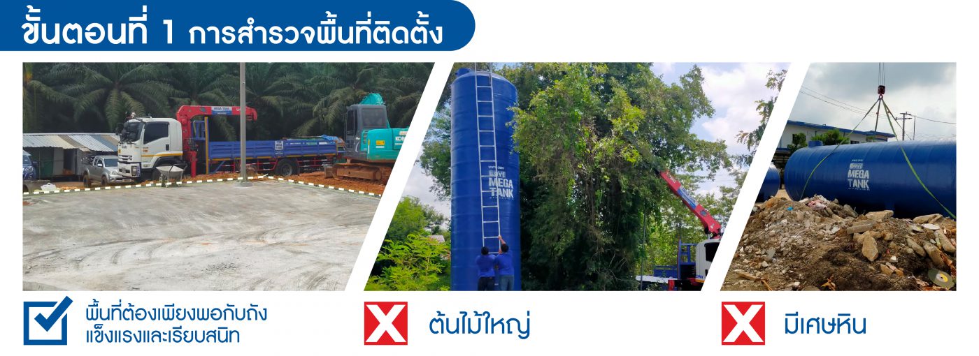 - พื้นที่ต้องเพียงพอกับขนาดถัง เเละสะดวกต่อการขนย้ายสําหรับติดตั้ง หลีกเลี่ยงรากฐานอาคาร เสาไฟฟ้า ต้นไม้ใหญ่