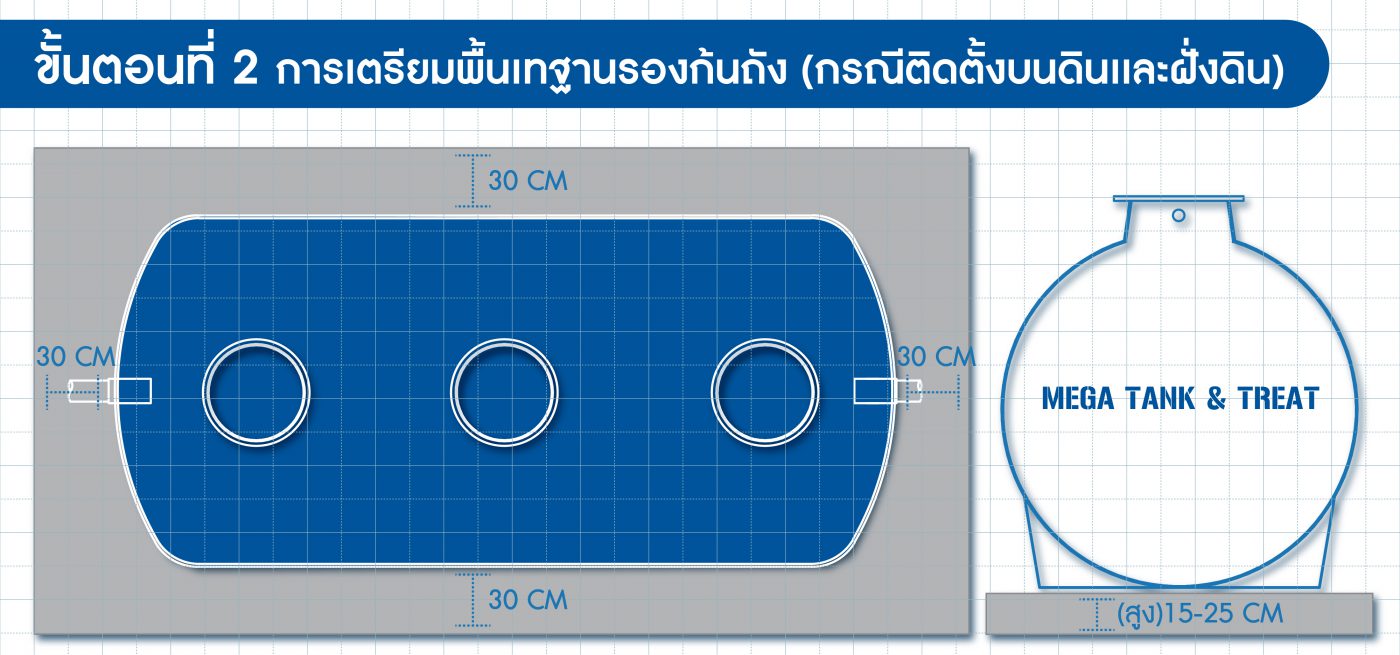 ขั้นตอนที่ 2 การเตรียมพื้นเทฐานรองก้นถัง (กรณีติดตั้งบนดินเเละฝั่งดิน)