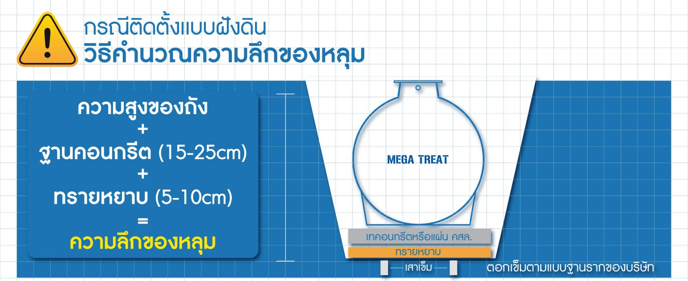 ความสูงของถัง+ฐานคอนกรีต 15-25 cm +ทรายหยาบ 5-10 cm = ความลึกของหลุม *ตอกเข็มตามแบบฐานรากของบริษัท