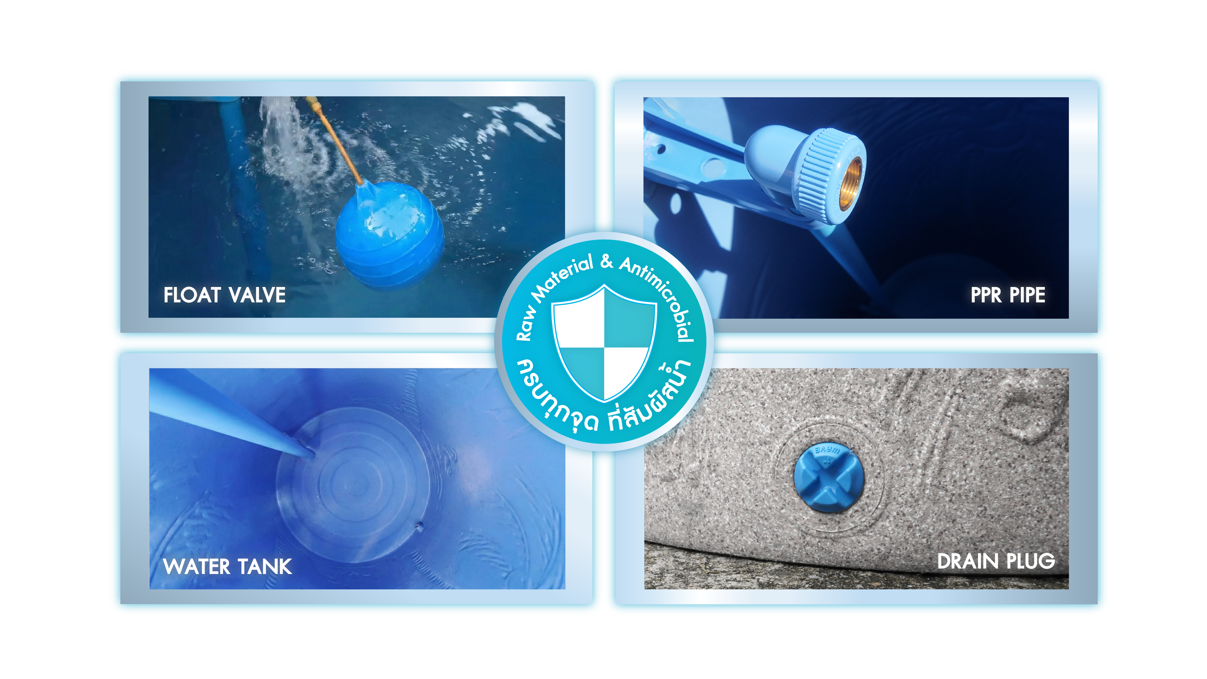 - สะอาดปลอดภัยทุกขั้นตอน ด้วยนวัตกรรมสารยับยั้งแบคทีเรีย รายแรก รายเดียวที่ “ครบทุกจุดที่สัมผัสน้ำ”