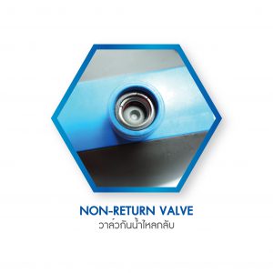 - มีวาล์วกันน้ำไหลกลับในตัว พร้อมเกจวัดแรงดัน