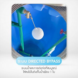 - น้ำไหลแม้ไฟดับ ด้วยระบบ AUTO DIRECTED BYPASS (เดินน้ำแบบ 2 ระบบ) งานระบบภายในตัวถังเก็บน้ำ ลดเวลาติดตั้ง ประหยัดพื้นที่