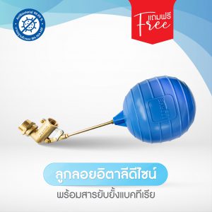 - แถมฟรี ลูกลอยทองเหลืองอิตาลีดีไซน์ Antibac ขนาด 1 นิ้ว (ลูกลอยสีฟ้า)