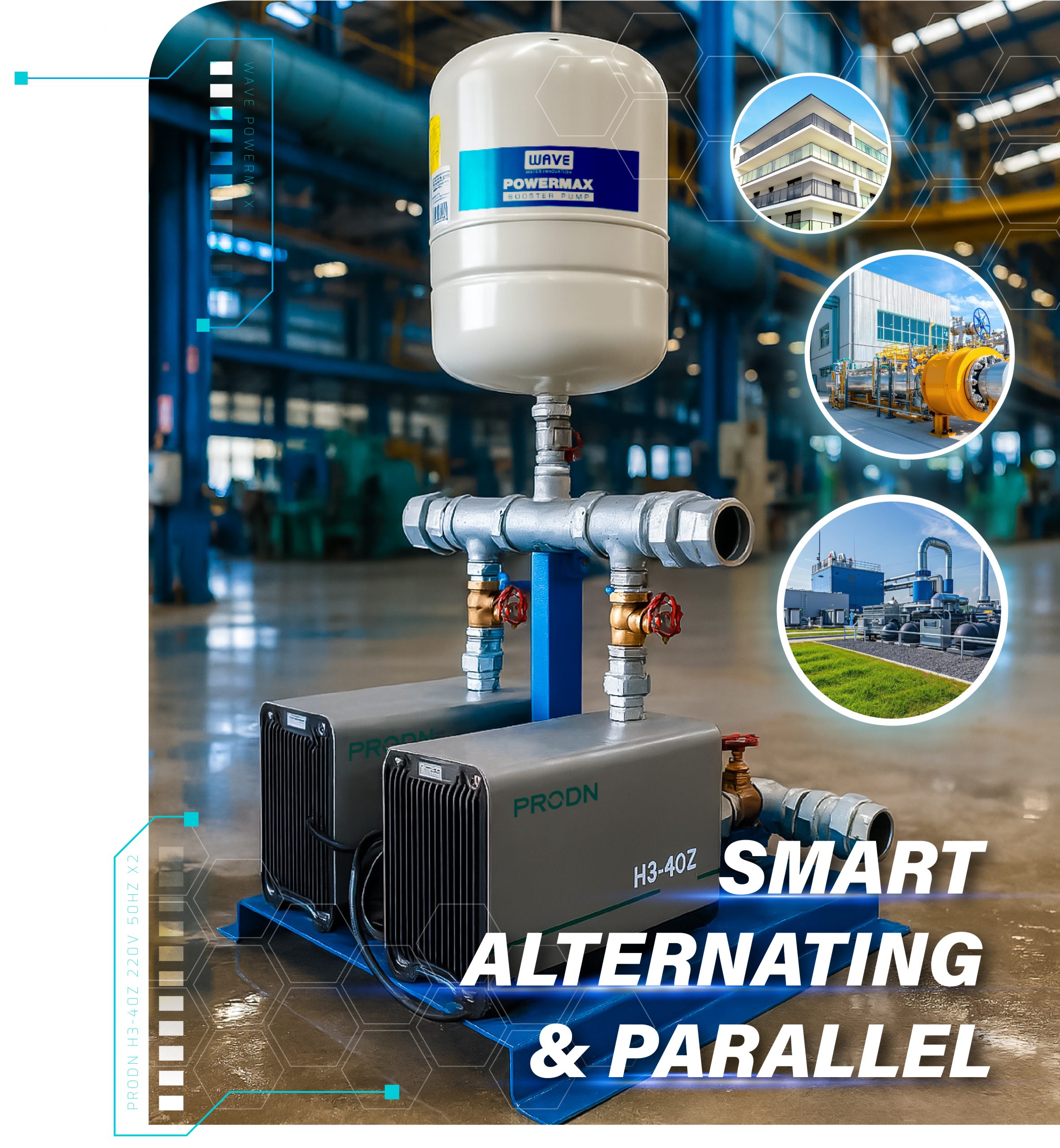 ปั๊มได้พักสลับกัน อายุการใช้งานยาวขึ้น ไม่พังง่าย แรงดันน้ำคงที่ ไม่สะดุด แม้เปิดพร้อมกันทั้งตึก